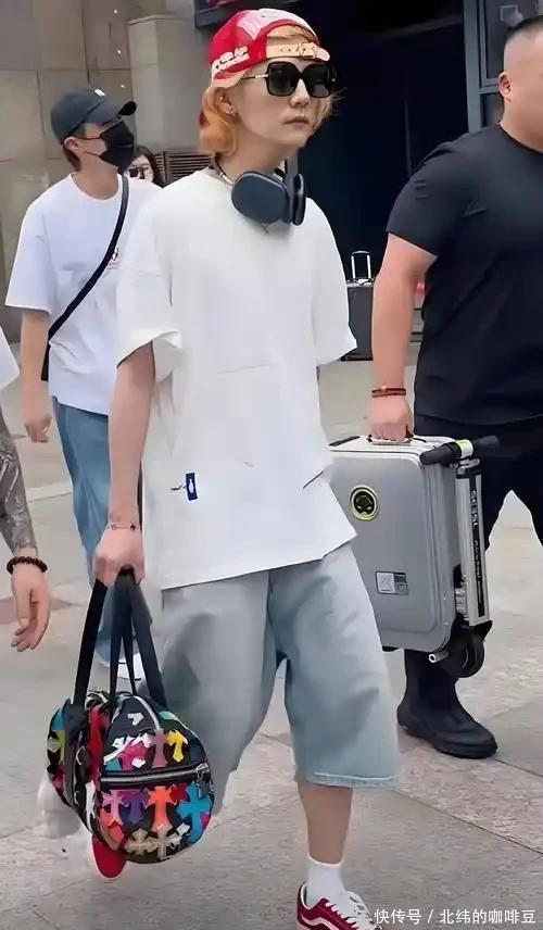 他脸的颧骨很高,戴了个墨镜感觉可以将他半张脸都遮起来,整个人连衣服都撑不起来。